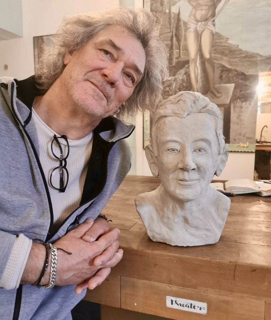 …als Tonskulptur. Fertig gebrannt, jetzt zieht er vom Atelier in unseren Garten. Ich freue mich. Ich habe ein altes Foto als Vorlage benutzt und ihn auch noch mit meinen Erinnerungen so fertig gestellt. Sehen wir uns ähnlich?